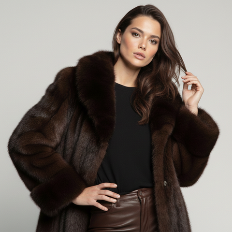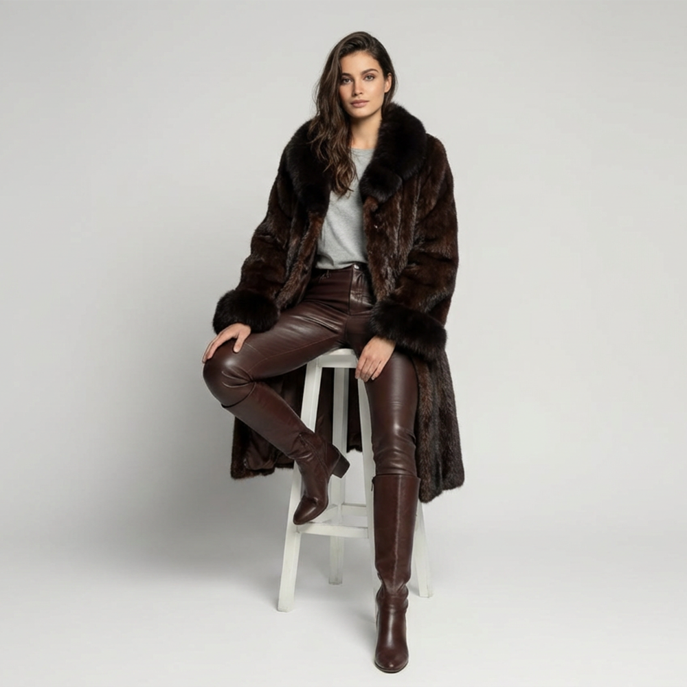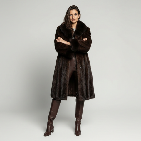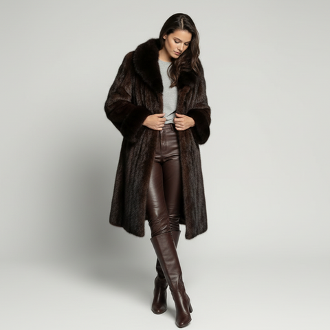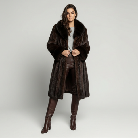 Avalon Full Mink Coat is the ultimate expression of timeless luxury. Expertly crafted from premium full mi fur, this statement coat delivers exceptional warmth, fluid movement, and a rich, natural sheen. Designed with a classic long silhouette and a plush mink collar, it elevates both everyday dressing and evening wear with effortless sophistication