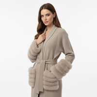 Its standout detail is the tiered genuine fox-fur cuffs and pockets, adding soft volume, warmth, and a luxurious statement finish.